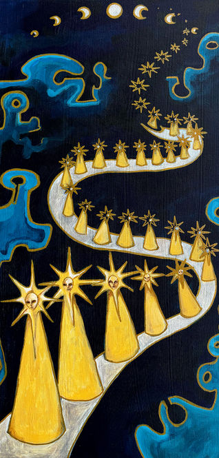 As a Pennsylvania native, I relocated to Los Angeles earning my BA in Sculpture/New Genres in 2022. I am a multidisciplinary artist with a fascination with the “magical”. I use surrealism as a means of building archetypes that play a role in the narrative of my work. The subjects I paint are those close to me; their traits and stories inspire their depictions, evoking a tapestry that is rich with emotion. I treat the premeditation stage of a painting like a ritual. I build intricate systems that are both performative and introspective that produce a vision. This vision ultimately inspires the manifestation of this magical interpretation of my waking life.